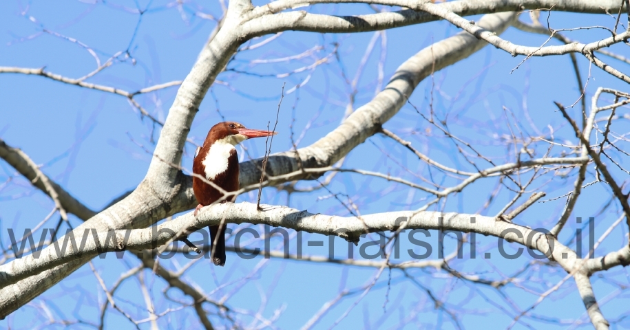 תמונה יפה ואמנותית של ציפור לבן החזה בין סעיפי האילן בתרדמת החורף. אזור צילום- שפלה.