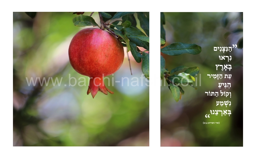 תמונת סט שני חלקים, בשילוב פסוק משיר השירים "הניצנים נראו בארץ", התמונה מביעה את השמחה של ניצני הגאולה, טוב ה' שמתגלה יותר ויותר.