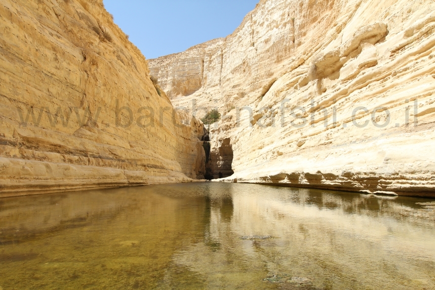 תמונה יפה של מעיין מים בין צוקי המדבר. אזור צילום-נגב.