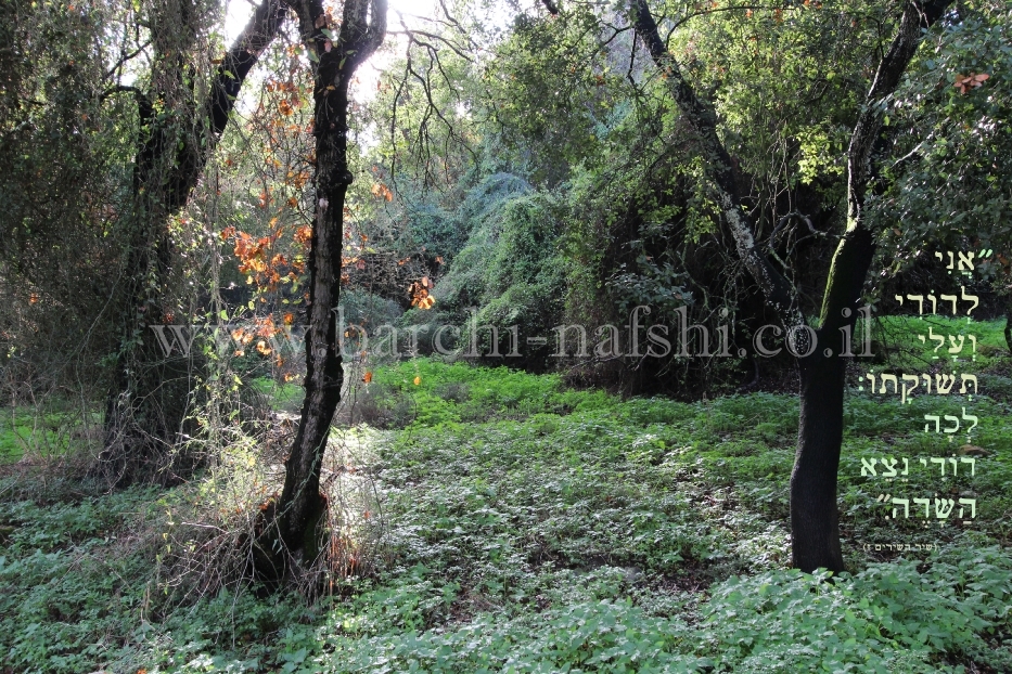 צילום פסטורלי ויפה מתוך יער אלוני התבור, בשילוב ציטוט מרגש משיר השירים פרק ז.