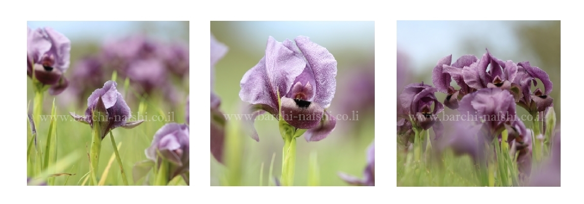 סט ריבועים אמנותי ויפה, פריחת האירוסים בסגול בהרי הגלבוע.